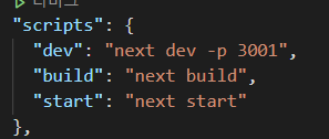 yarn dev에서 개발을 진행할 예정이므로 scripts에 dev를 추가해 next를 지정!