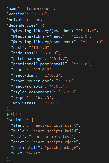 이를 위해 package.json 파일로 이동해 scripts 부분을 수정해주자.