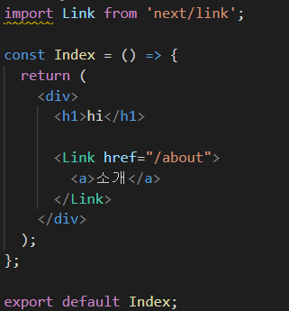 익숙한 react-router-dom의 { Link }가 아니라, next/link의 Link를 import 해왔다.