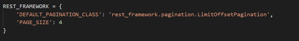 중간에 DEFAULT_PAGINATION_CLASS와 PAGE_SIZE를 지정!