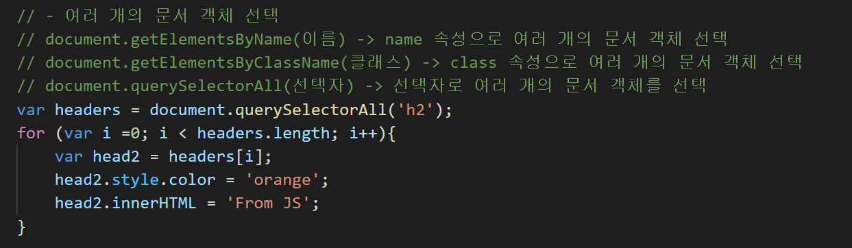 쨔잔. querySelectorAll의 경우 조건에 맞는 모든 객체를 가져오고자 하기 때문에...