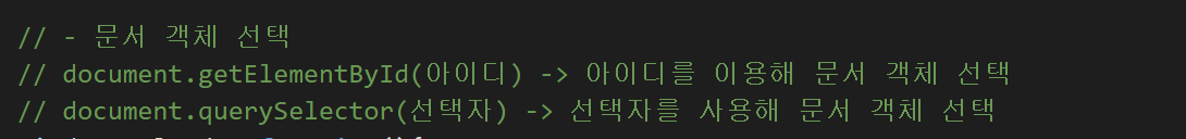 각각 html상의 아이디와 선택자를 이용해 해당 객체를 선택할 수 있다!