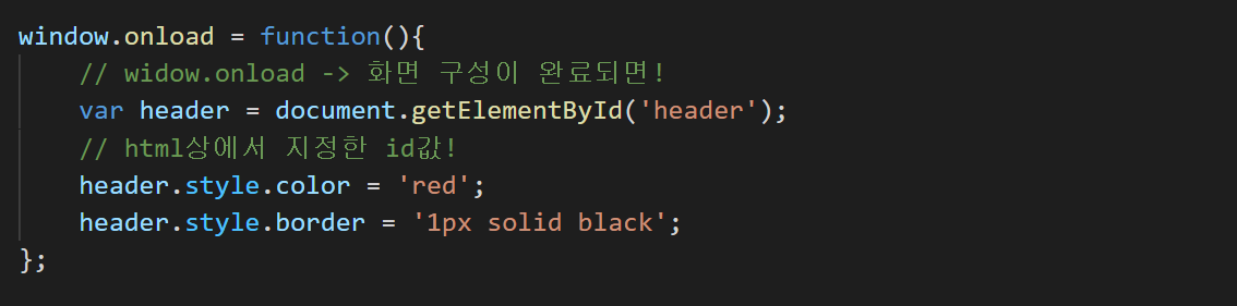 이는 document, 즉 여기서는 inweb.html 내에서 Id가 header인 녀석을 선택한 것.