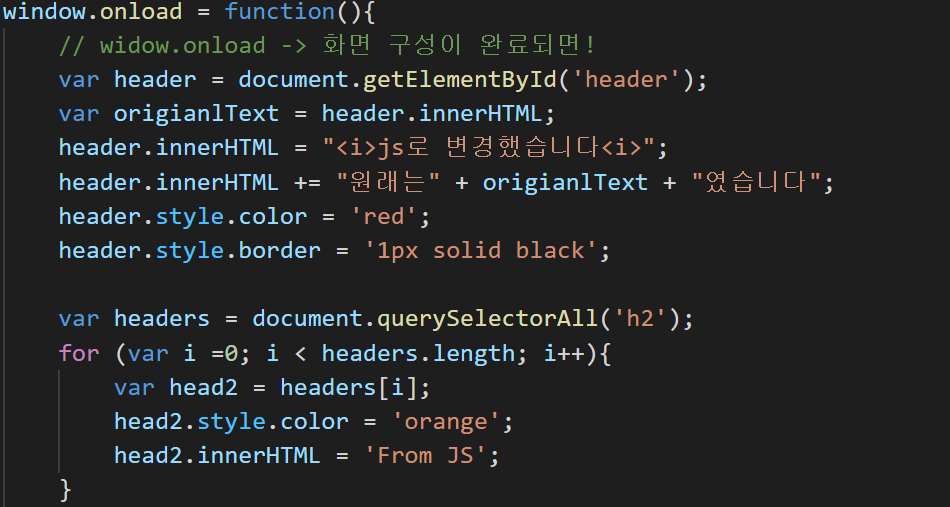 아하! innerHTML이라는 녀석을 이용해 html상의 요소를 js에서 바꿀 수 있다!