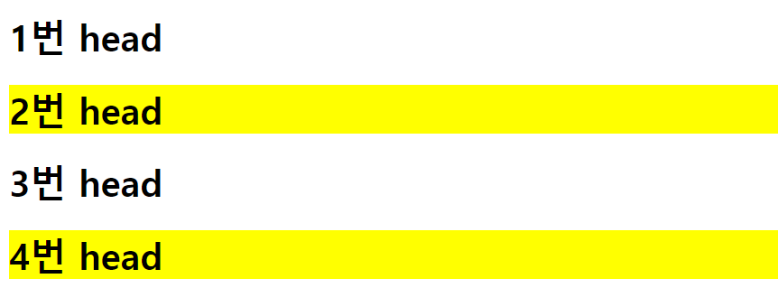 쨔잔. js를 통해 짝수 번째 h1의 css를 바꿔줬다.
