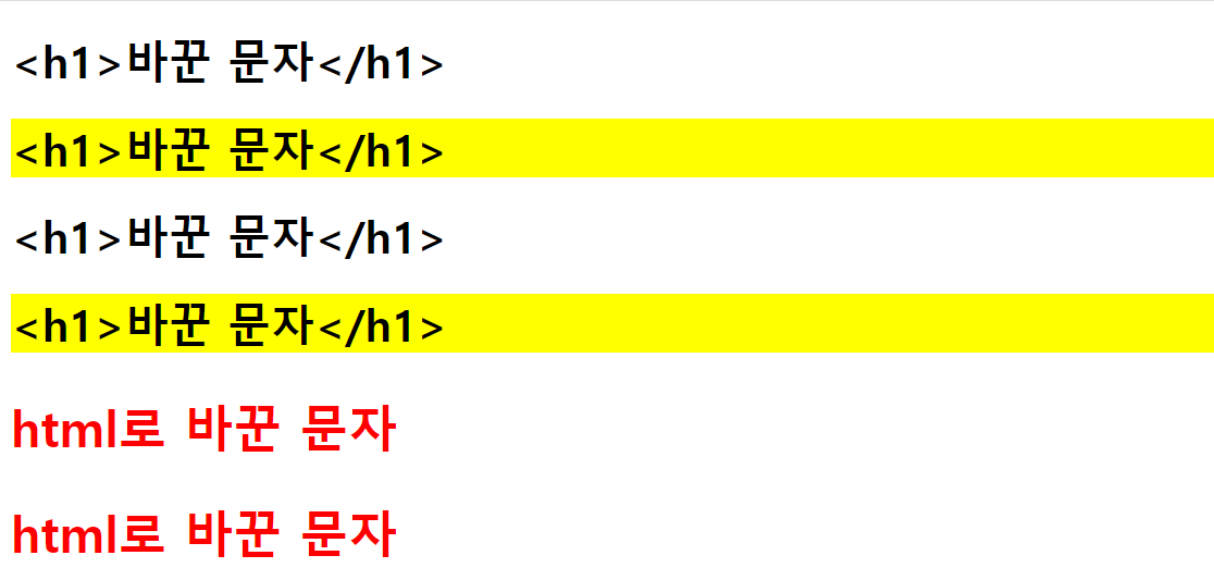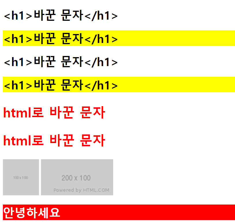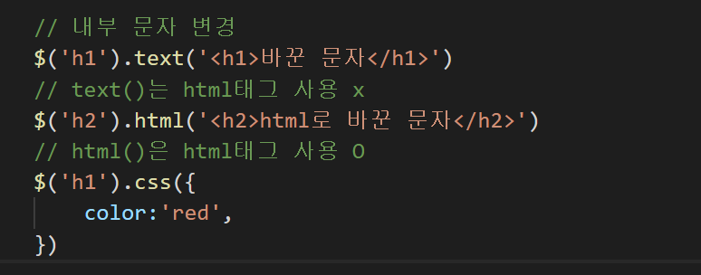 또한 text()에서는 <h1>과 같은 html 태그를 사용할 수 없지만(입력한 그대로 출력되고 말았다),