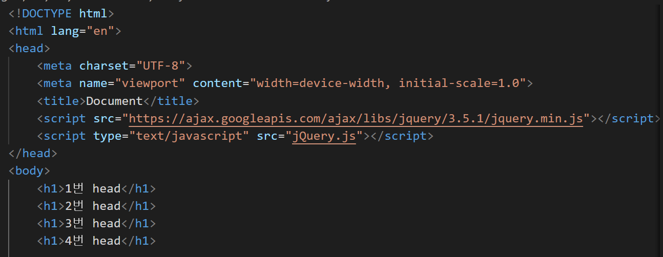 그런데 jQuery는 다른 사람이 만들어 둔 라이브러리라고 했다. 따라서 요놈도 script로 받아와야 한다!