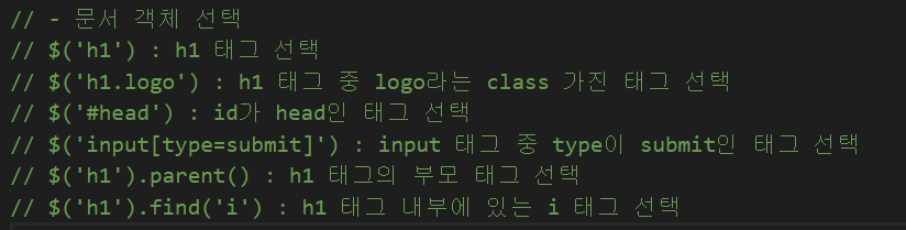 jQuery에서 객체를 생성하기 위해서는? document, css 선택자, html 문자열을 사용할 수 있다.