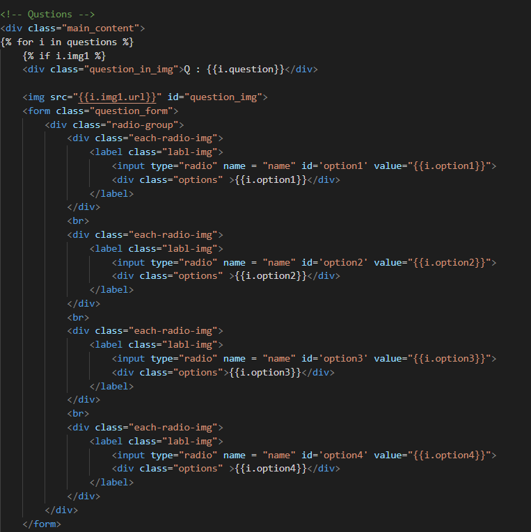 우선 for문으로 view에서 받아온 question들을 돌면서 받아온다.